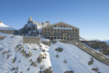 Just a few steps from Punta Helbronner station lies this historic alpine lodge, a witness to the most important ascents of Mont Blanc
