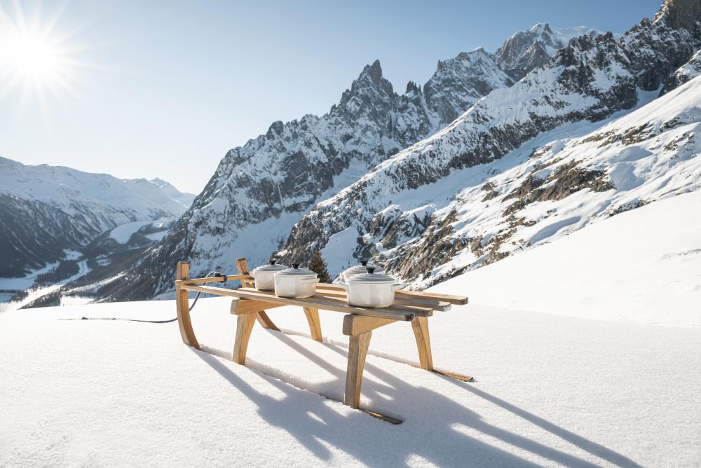 À 2 173 mètres d'altitude, sous les parois de verre du Restaurant Alpin du Pavillon | La Montagne, l'expérience culinaire de l'explorateur s'enrichit du design iconique de Le Creuset. Les cocottes blanches raffinées de la marque française sont à l'honneur lors de votre séjour alpin : les plats sont servis directement dans ces célèbres cocottes en fonte émaillée, où l'authenticité des produits de la Vallée d'Aoste rencontre l'élégance intemporelle du savoir-faire français.