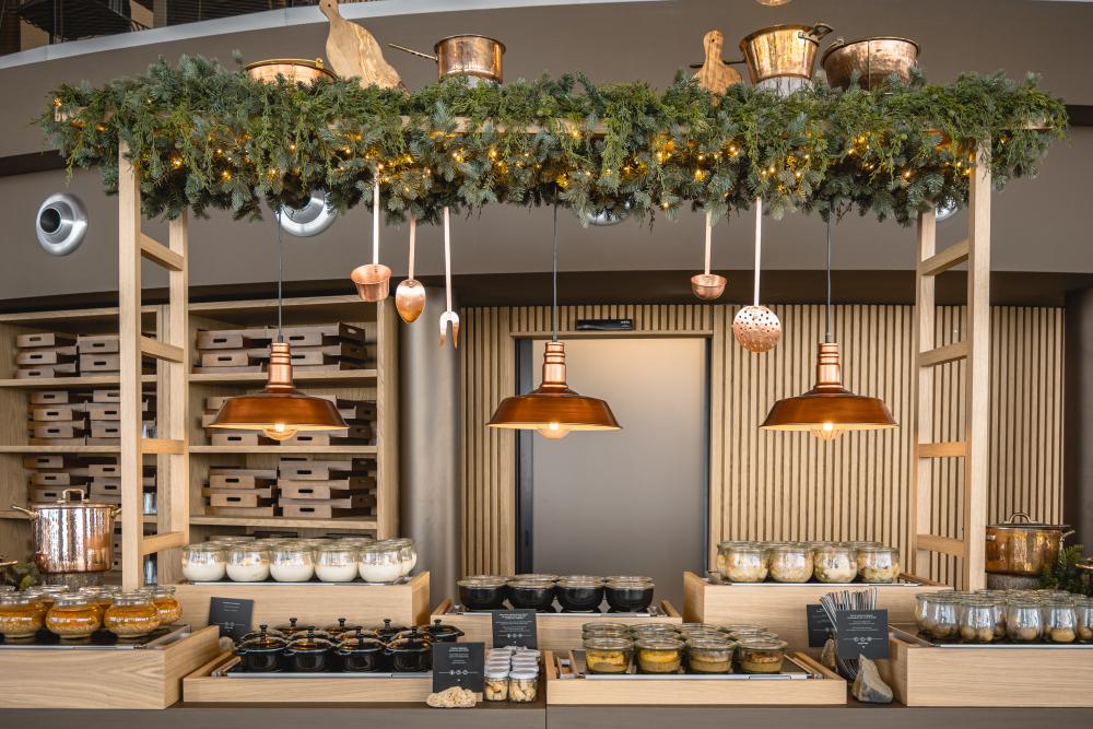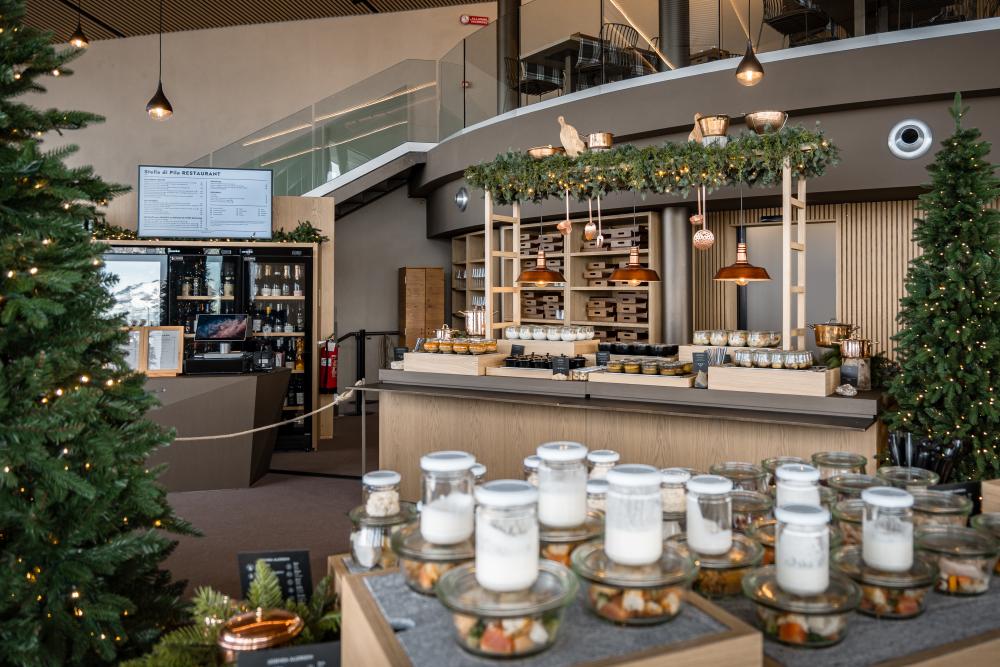 La Stella di Pila accoglie con uno stile essenziale e curato firmato Skyway Monte Bianco: dalla colazione all’aperitivo, dal pranzo a buffet alle bevande calde o fredde servite al bar. Tutto accompagnato da una selezione di vini della Valle d’Aosta per un’esperienza enogastronomica in contemplazione del panorama circostante.